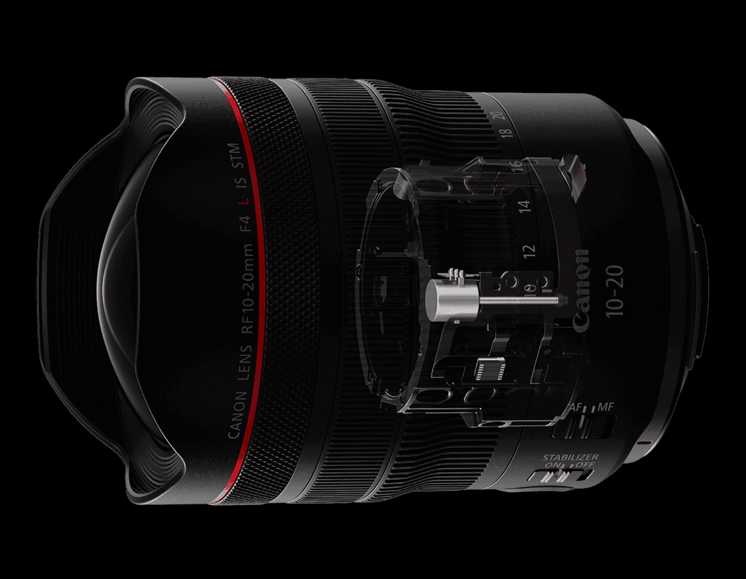 Canon 亦在 RF10-20mm F4 L IS STM 中首次採用導螺桿型 STM 馬達及以往只在 Nano USM 鏡頭中使用的對焦鏡片位置偵測感測器 (位置感測器) 組合。因此開機時對焦鏡片的位置不需被重設,縮短了啟動時間,能更迅速地進入拍攝狀態。