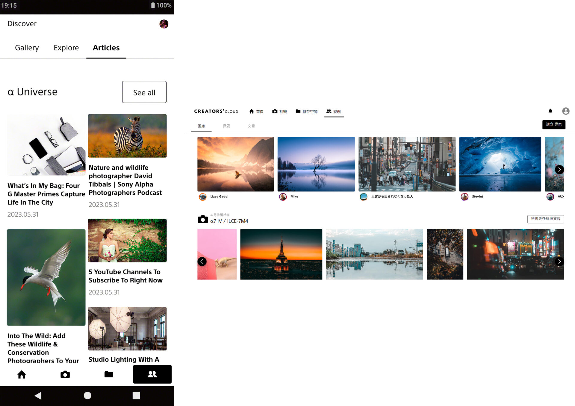 創作者透過Creators’ Cloud能將其使用 Sony 相機所拍攝的動靜態影像傳送至雲端,有效率並安全地在平台上瀏覽並分享創作內容。