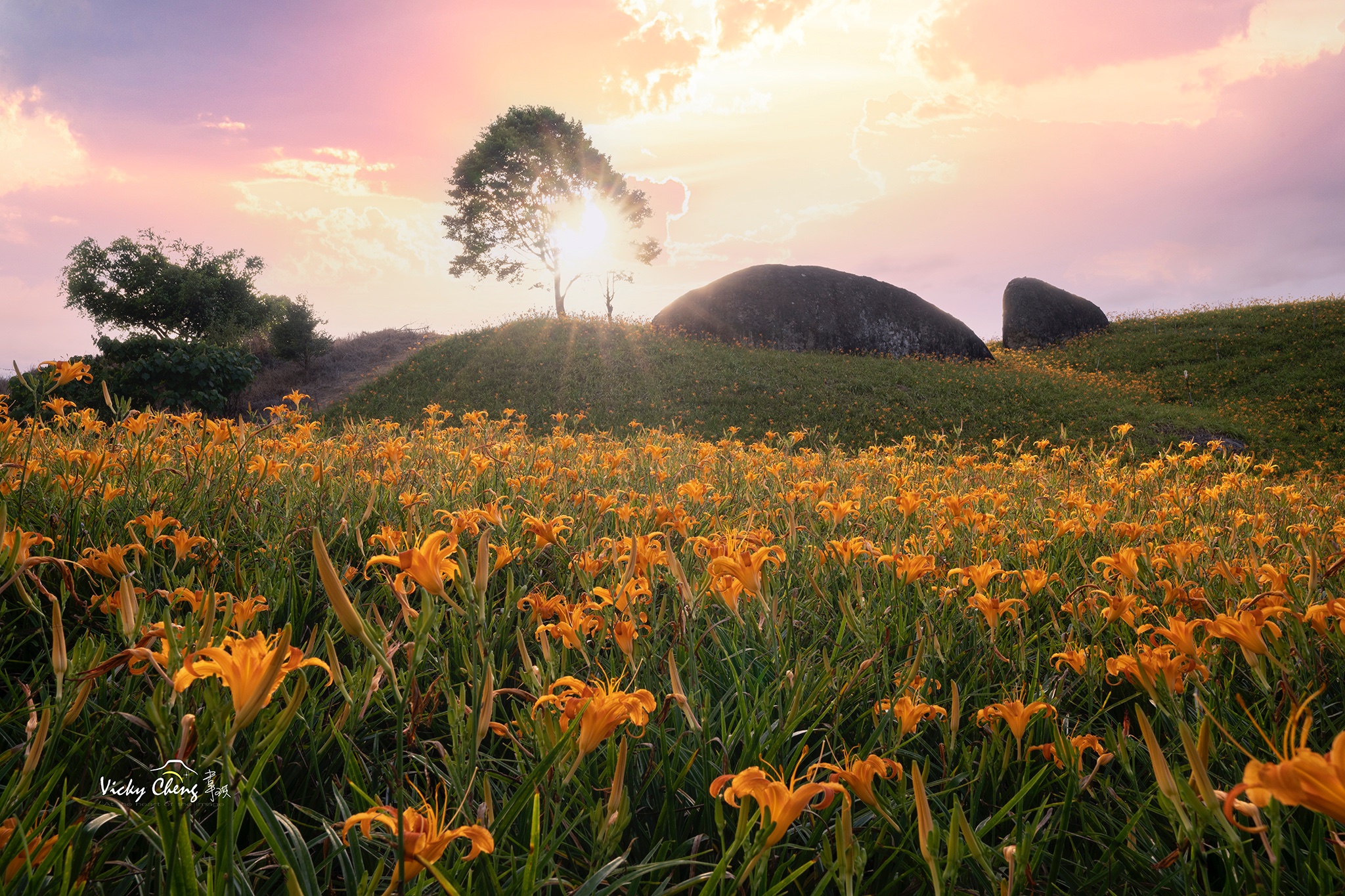 早上:赤科山金針花拍攝(伯公廟、小台灣、千噸石龜、汪家古厝…)