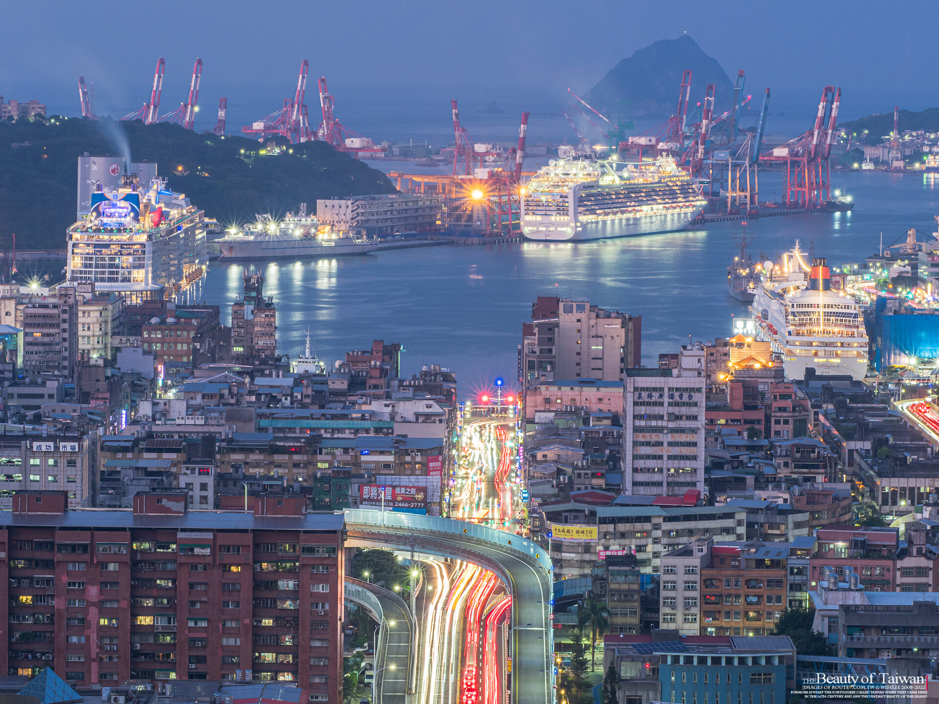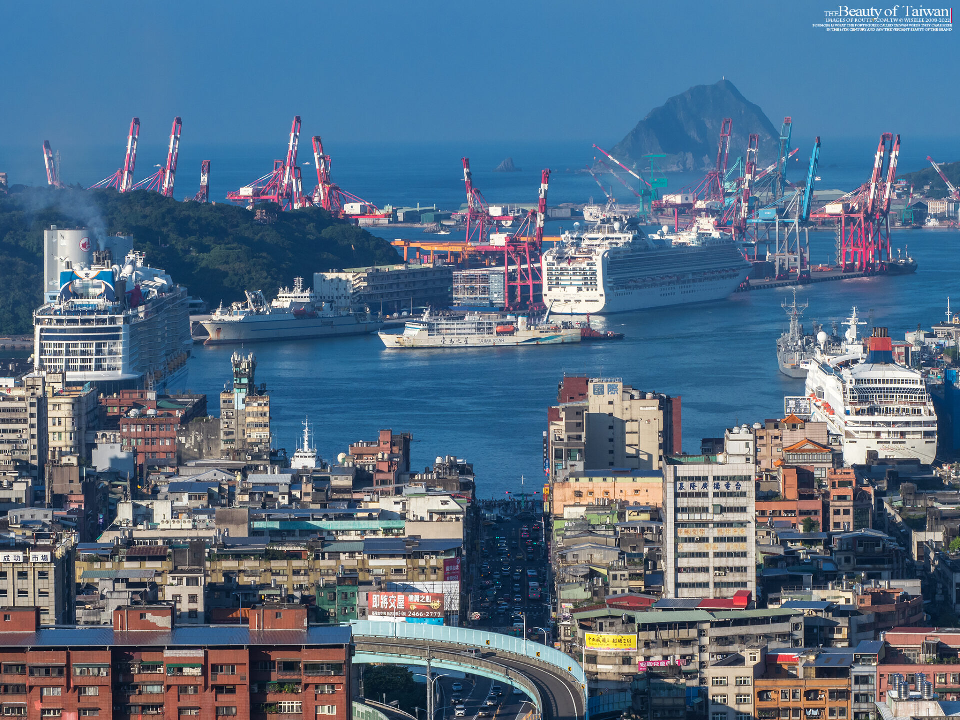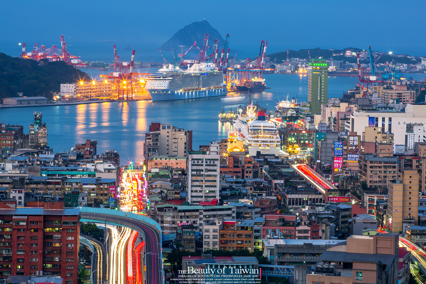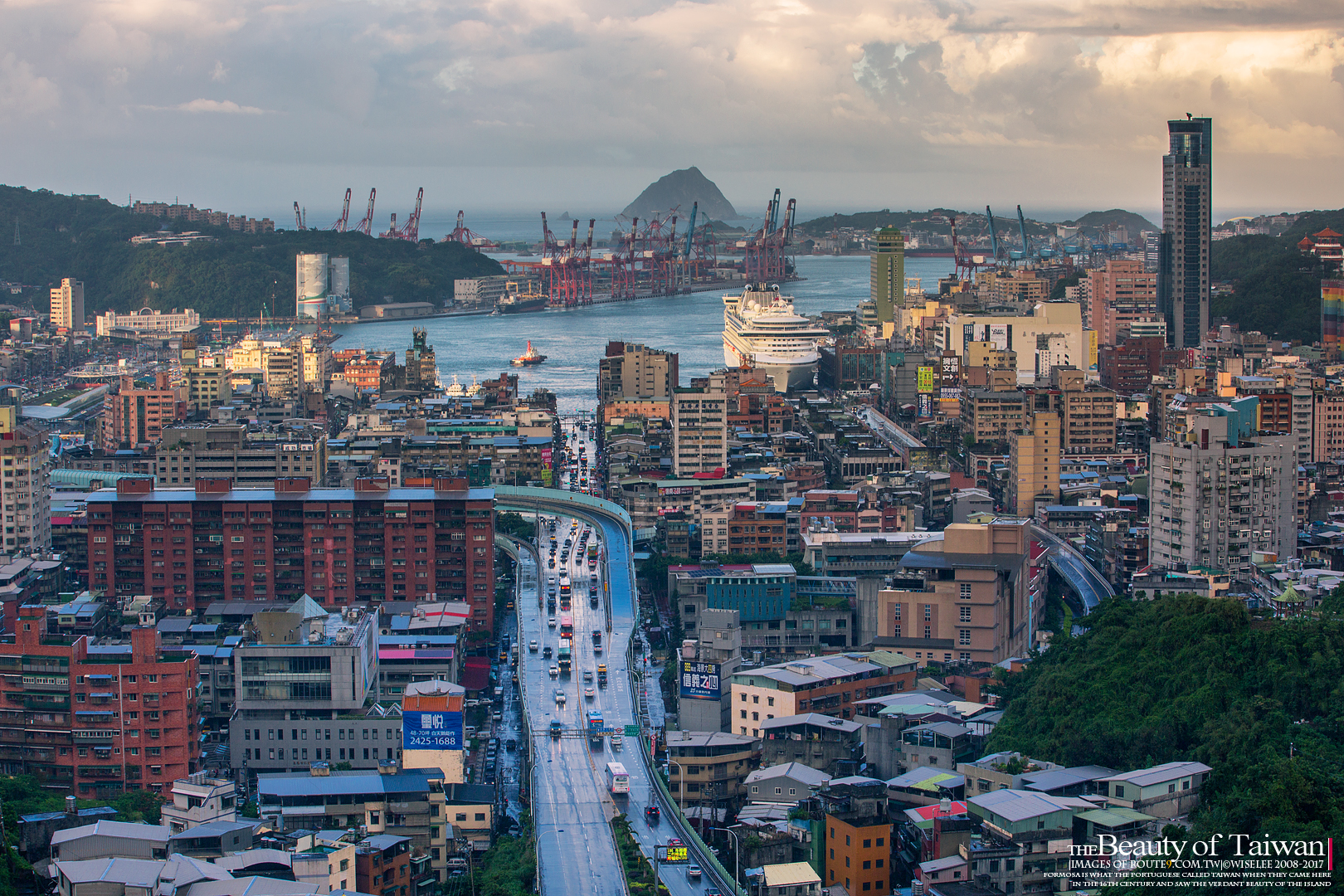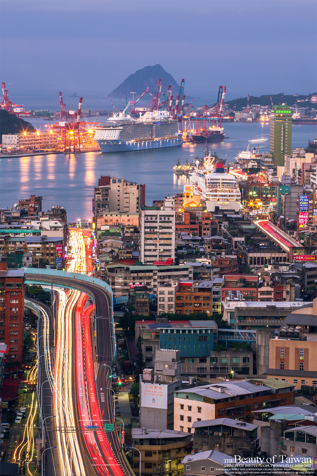 ※器材與拍攝建議:由於這裡拍攝視野涵蓋了基隆港與下方的基隆市區街道、國道1號出口以及遠處的基隆嶼,因此中焦段24-70mm會是最適合的拍攝焦段。此外,每當有郵輪停靠時,由於每艘郵輪各有不同的造型與特色,換上70-200mm長鏡頭則可以把每艘郵輪的特色鉅細靡遺的呈現。
