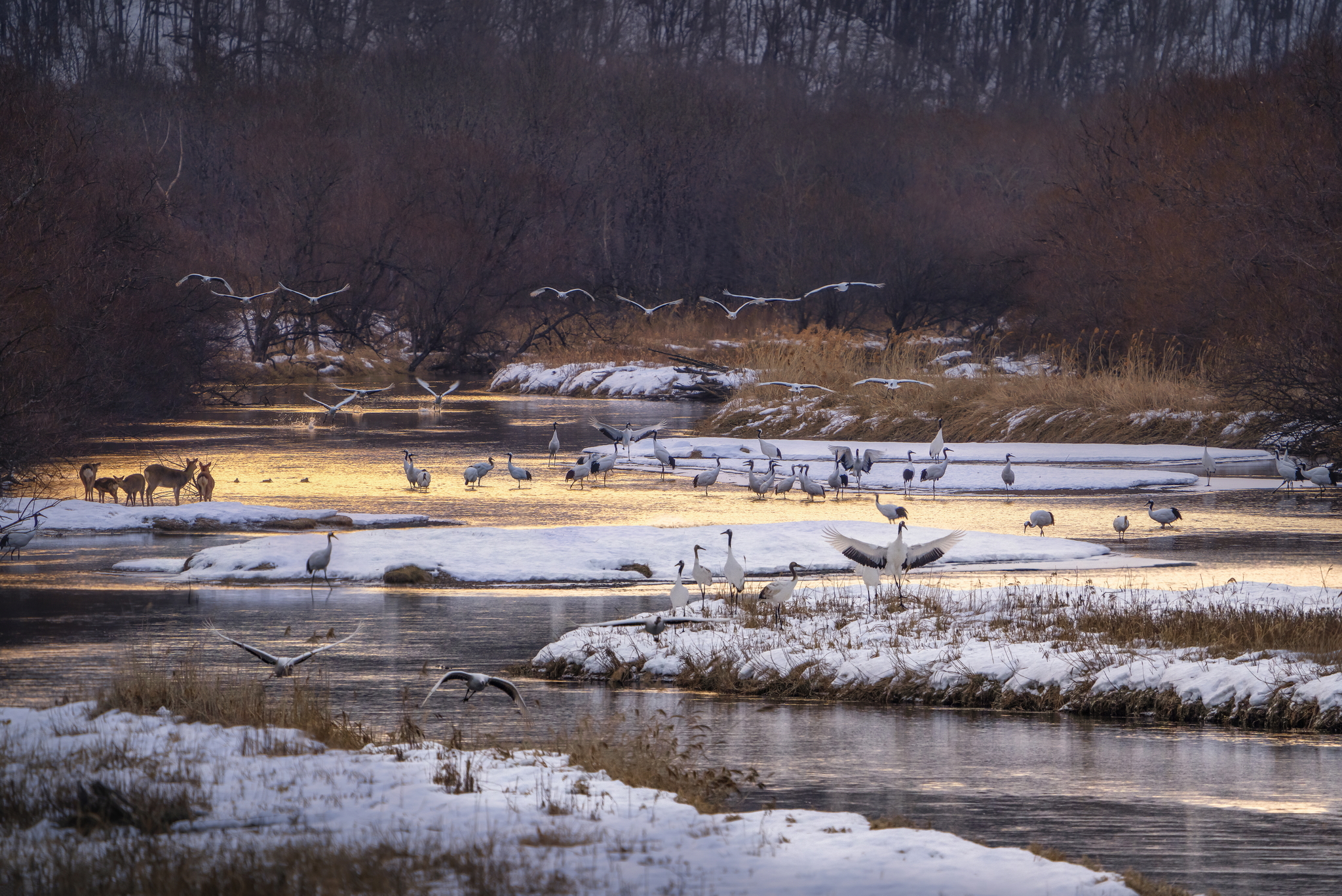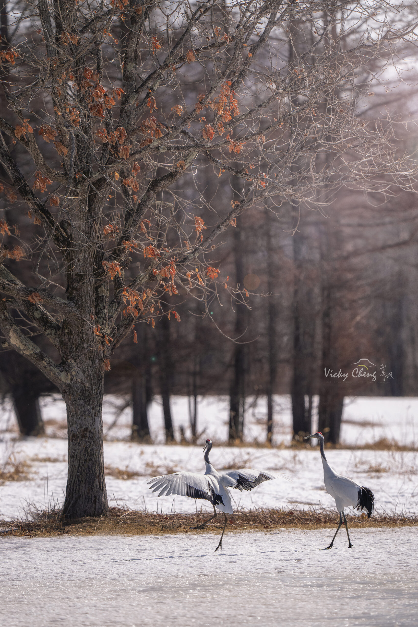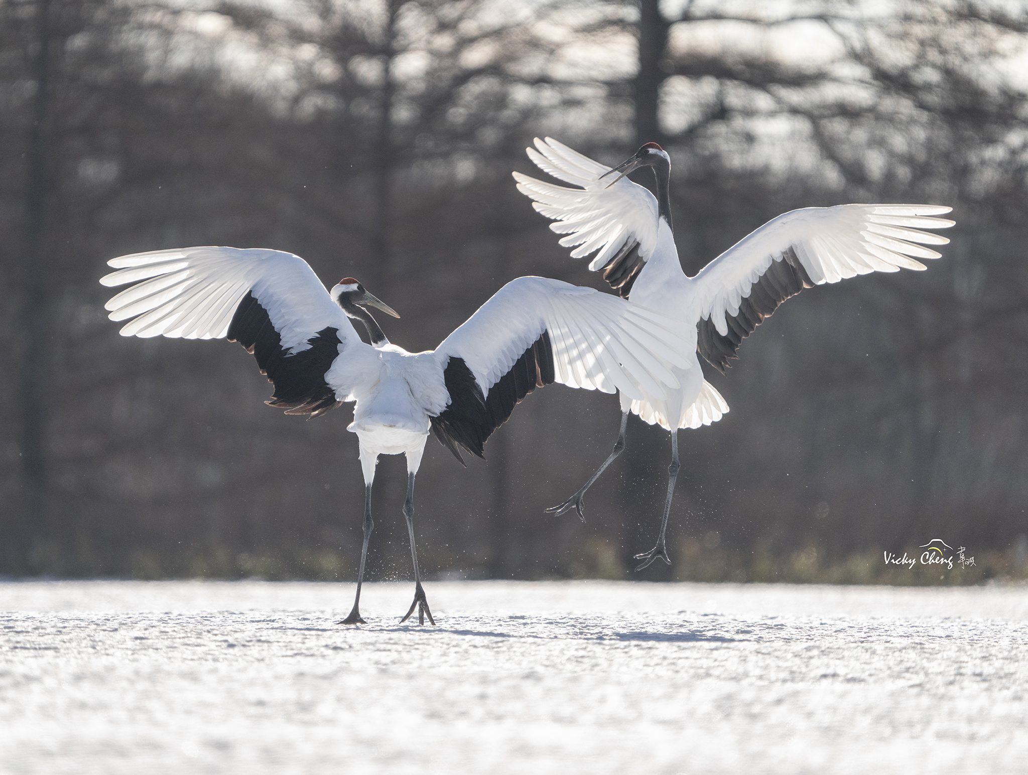 韋琪說:「除了在音羽橋遠距離拍攝外,會另外安排在伊藤牧場或鶴見臺拍攝,有機會在較近的距離內拍攝求偶舞蹈與飛翔版,這時相機的高速連拍及寫入速度就非常重要。Sony α7R V在高速連拍模式下可以10 fps速度連拍多達583張壓縮RAW影像,加上精準的連續自動追蹤對焦,讓我可以完整的紀錄下兩隻丹頂鶴的互動,沒有錯失任何精彩的瞬間。回來在電腦挑圖時,不論是展翅、降落、抬腿或是昂首吐氣,張張準焦且動作連續,挑圖時都不禁會微笑。」另外全新的4軸多⾓度翻轉螢幕,也解決了過去只能單向翻轉的不便,在野外各種地形下使用,或高或低、或傾斜或貼地,都相當方便,韋琪也給了非常好的評價。