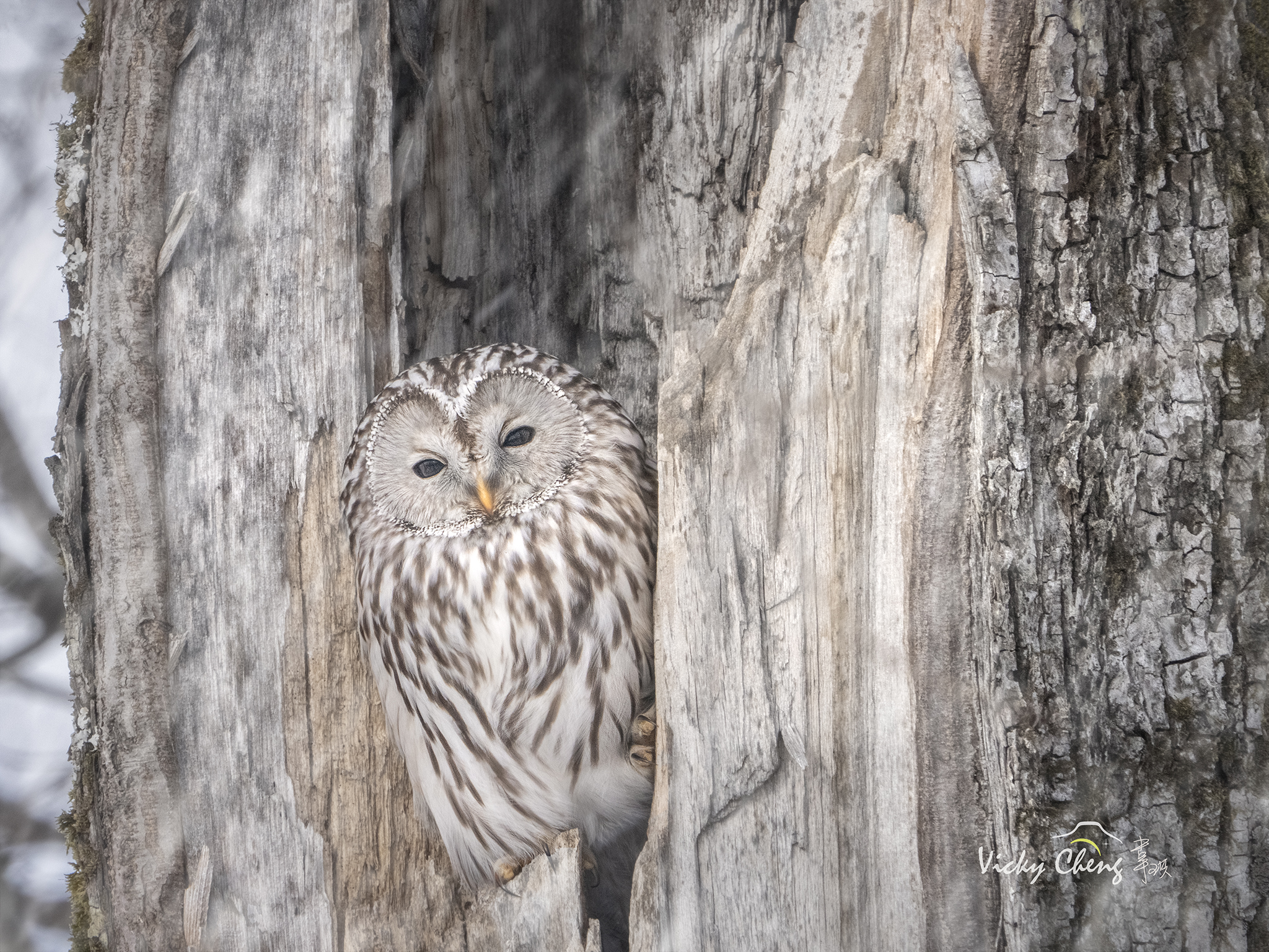 除了靜態照片以外,韋琪也順便同時手持錄製了一段長尾林鴞搔癢的畫面,是不是可愛極了!!(※可注意手持錄影+600mm長鏡頭使用下畫面的穩定度)